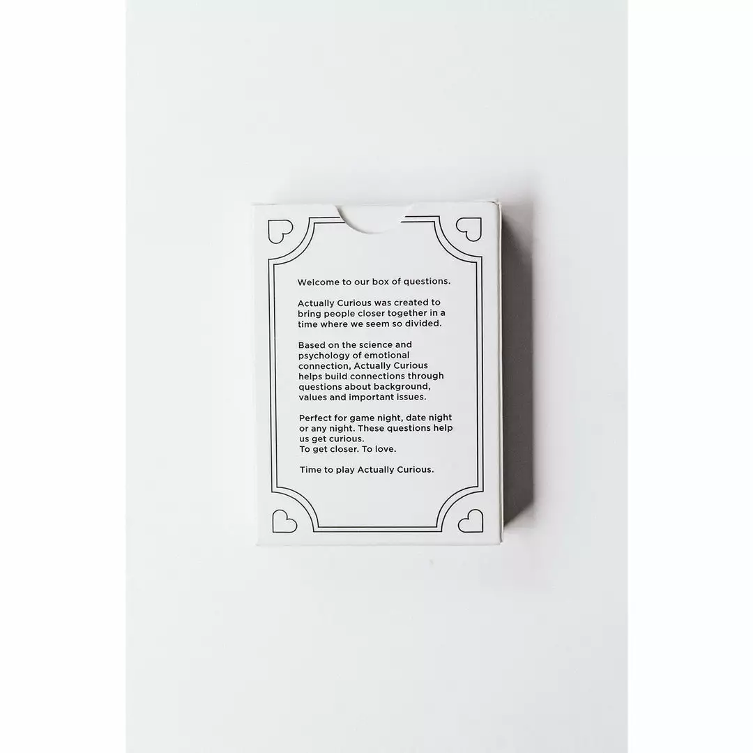 A card game and a mission to spread empathy, Actually Curious helps players build connections through meaningful questions. The original Curiosity Edition explores questions of background, values, and views on important issues.
