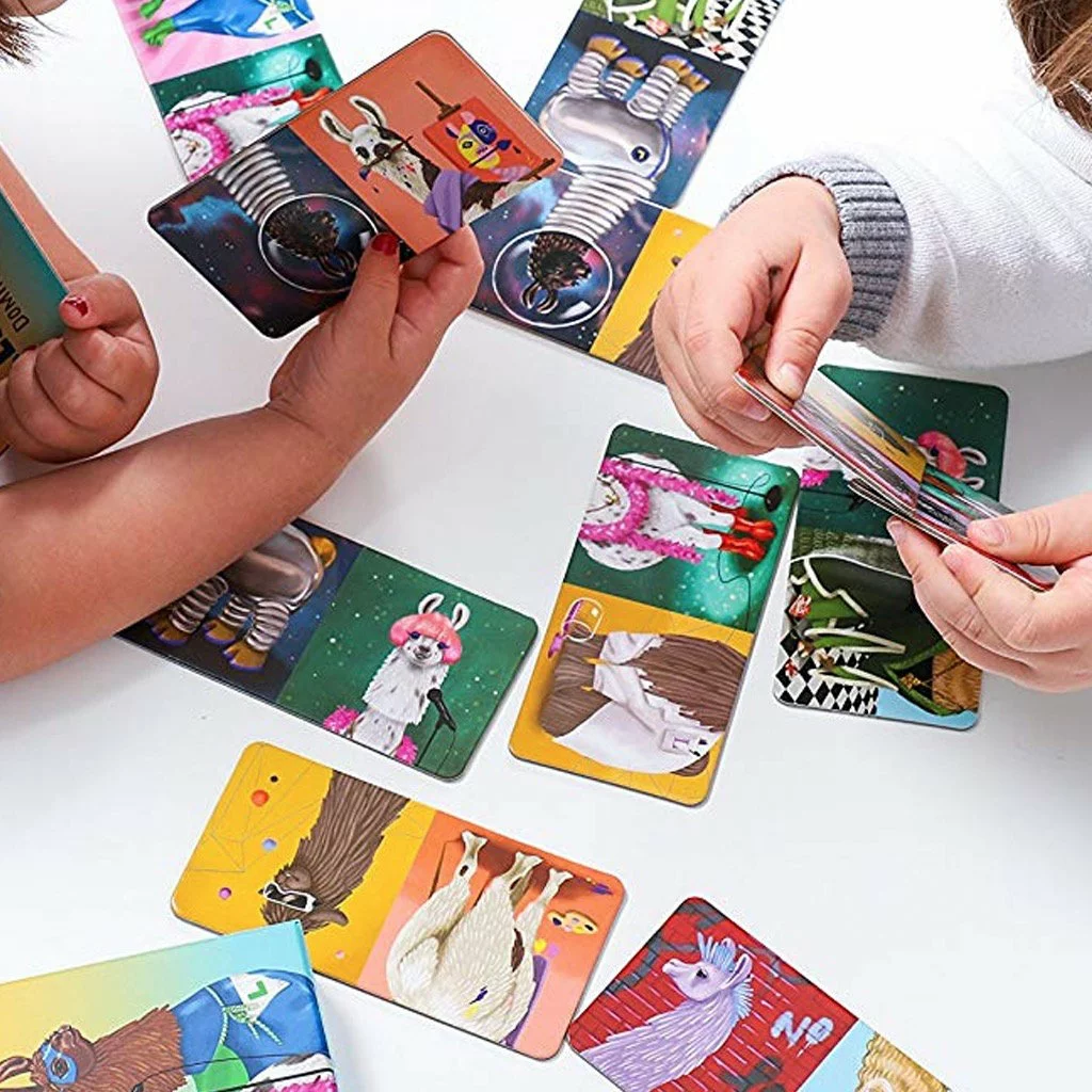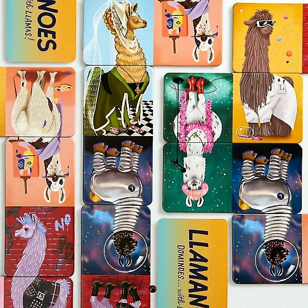 A hilarious herd of llamas star in this laugh-out-loud twist on the game of dominoes. From Llama-nardo da Vinci to Super Llama (it’s a bird, it’s a plane, it’s . . . a llama?), kids, families, and llama enthusiasts will have a blast matching heads to tails to complete the chain and win! It’s a goofy gift, a boredom-busting game, and a great way to develop matching and fine motor skills, all in one appealing and colorful package.
