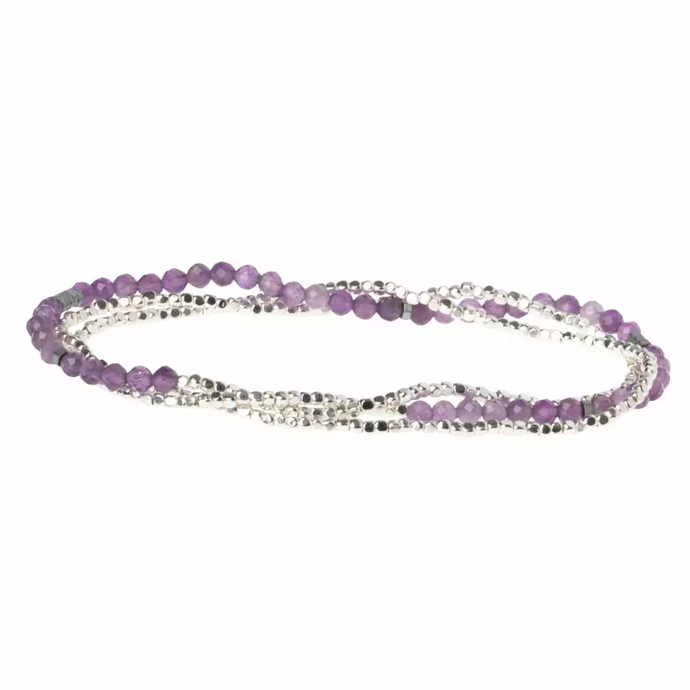 Faceted gemstones mix with tiny geometric metal beads to create a subtle and magical piece.  Wraps as a bracelet 3 times or wear as a single strand necklace.