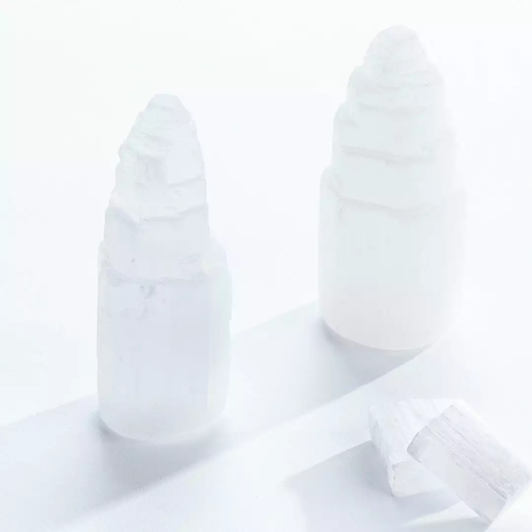 Selenite is a crystalline mineral variety of gypsum. The crystals form in mica-like sheets that appear like columns, giving them an architectural look. By GeoCentral